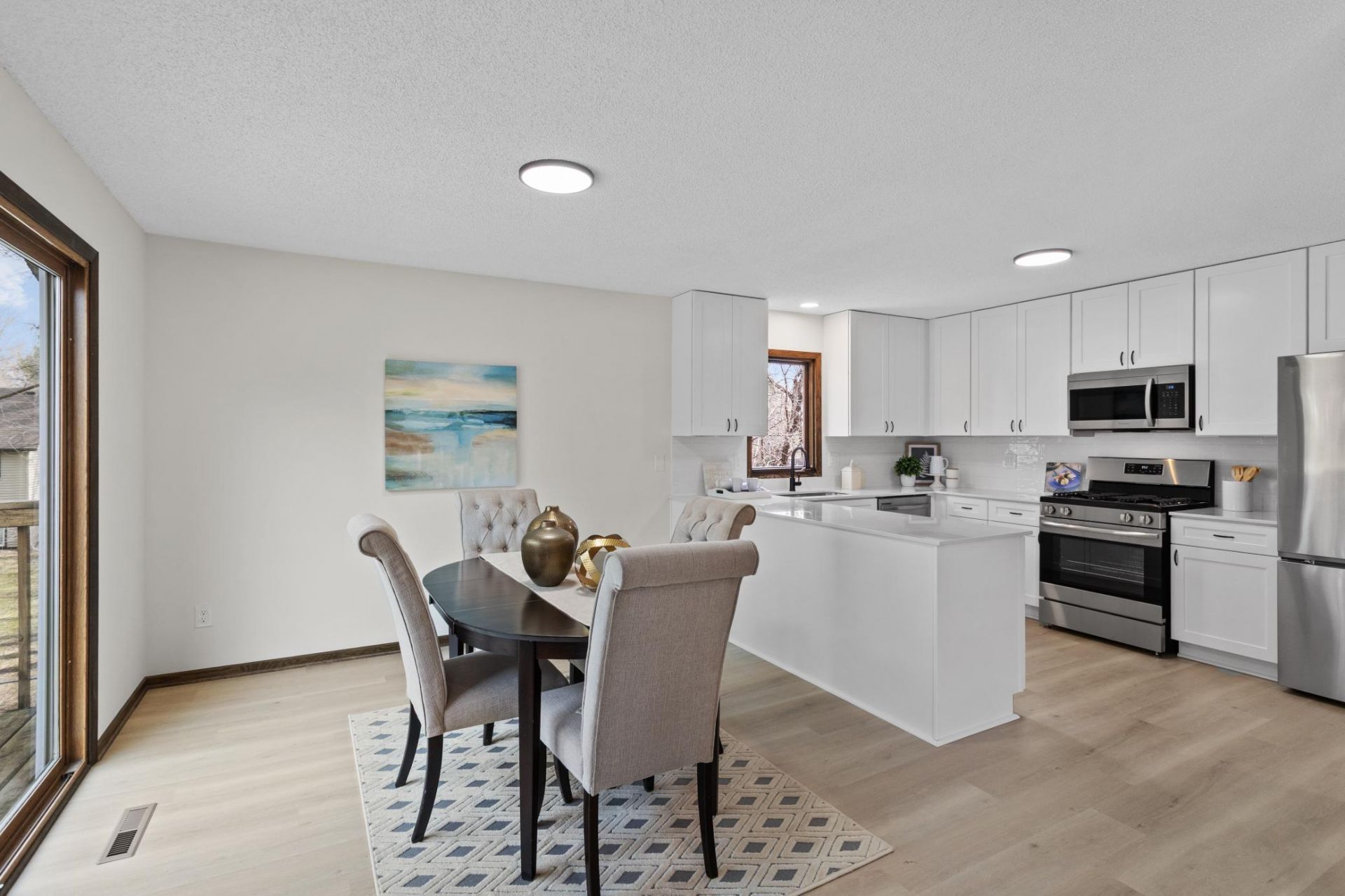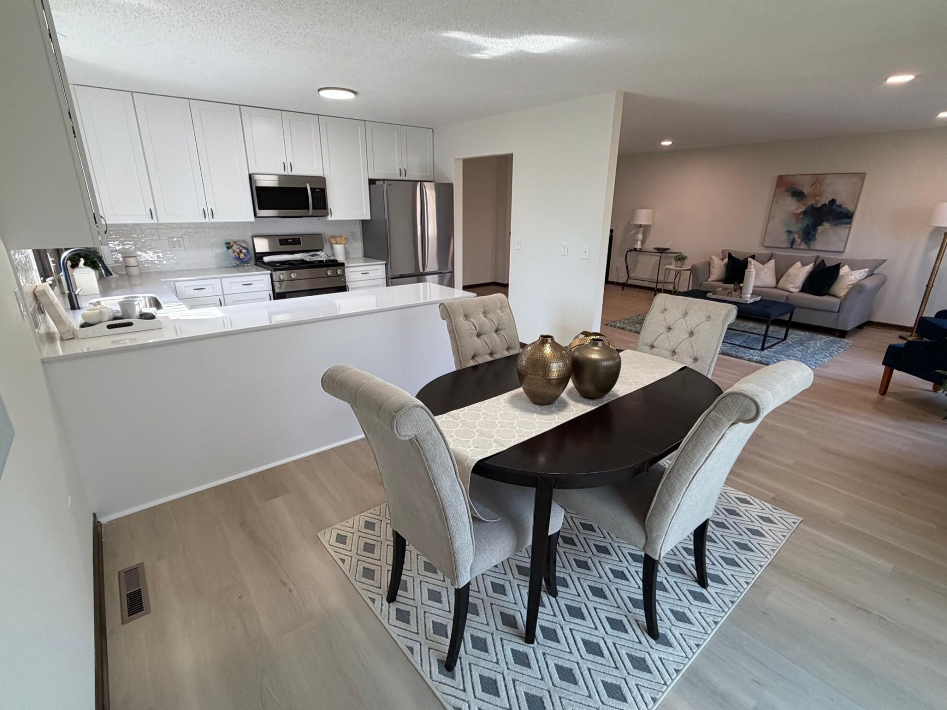 Updated 4 bedroom, 2 bathroom split-level home situated on nearly a half-acre lot. The upper level features fresh paint and new LVP flooring throughout a spacious living and dining area with recessed lighting, along with a fully updated kitchen showcasing new countertops, cabinets, tile backsplash, and stainless steel appliances. Also on this level is a full bathroom with a new vanity, fixtures, and tile tub surround, plus two bedrooms with new carpet. The lower level offers an additional living room with a cozy fireplace and new LVP flooring, two more bedrooms with new carpet, and a 3/4 bathroom with updated vanity, fixtures, and tub surround. Exterior improvements include new siding on the front and sides, freshly repainted rear, and a deck that will be painted. Enjoy the large backyard with plenty of space to relax or entertain.