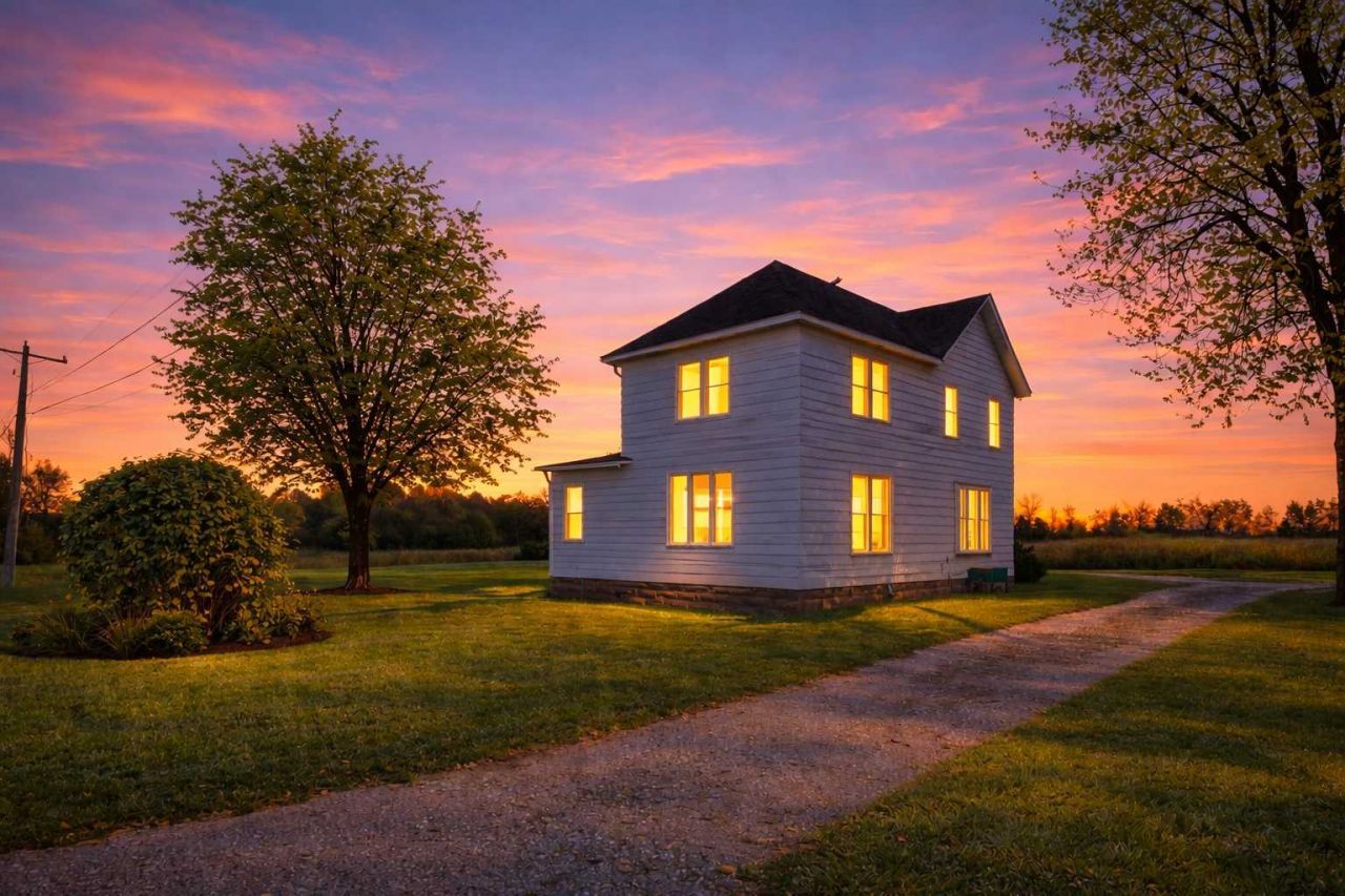 Nestled on 7.02 acres, this charming 2-story home blends character with thoughtful updates. Hardwood floors flow throughout, with a main floor bedroom and an updated 3/4 bath, plus a beautifully remodeled full bath with granite upstairs. Three generous bedrooms up offer space and comfort. Enjoy a formal dining room with built-in buffet and a beautifully updated kitchen featuring two sinks, abundant cabinet and counter space. Numerous Andersen windows bring in natural light. City sewer with well water. Electrical upgrades include 200 amp service to house and garage, plus 100 amp to the shed and chicken coop. The 40x32 detached garage is partially insulated with an insulated steel door and 220/110 power. Conveniently located on the edge of town?country space with town convenience.